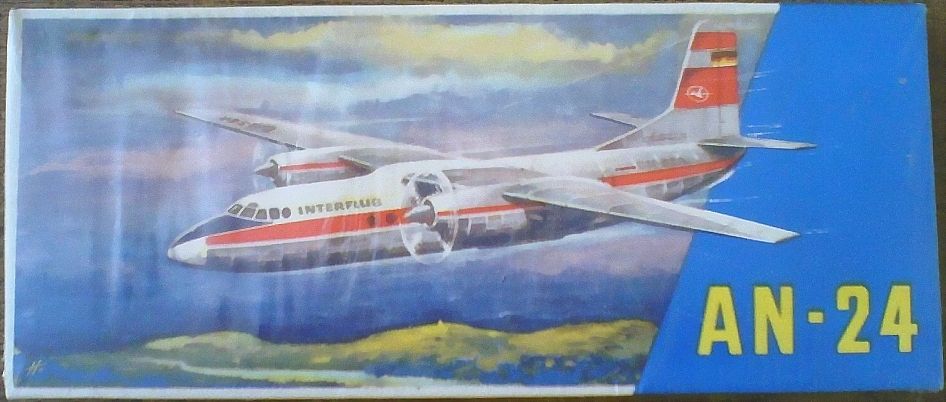 AN-24 Schachtel von oben und seitlich. Bilder auf dem Seitenteil von links nach rechts: DC-8, IL-62, COMET 4. Bemerkenswert ist das Bild der DC-8. Es entspricht einer Verpackungen B (laut meiner Bildtabelle). Eine Verpackung im Stil der Verpackungen C (laut meiner Bildtabelle), scheint es nicht gegeben zu haben. Zumindest ist mir bisher keine bekannt.